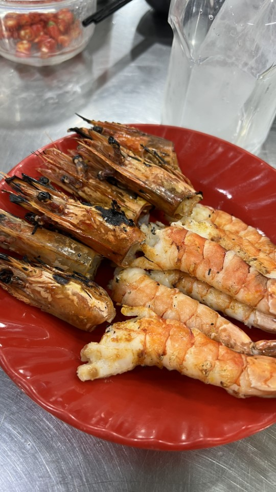 저희는 돼지갈비구이 + 오징어 구이 + 새우구이 + 아이들은 볶음밥 + 모닝글로리!